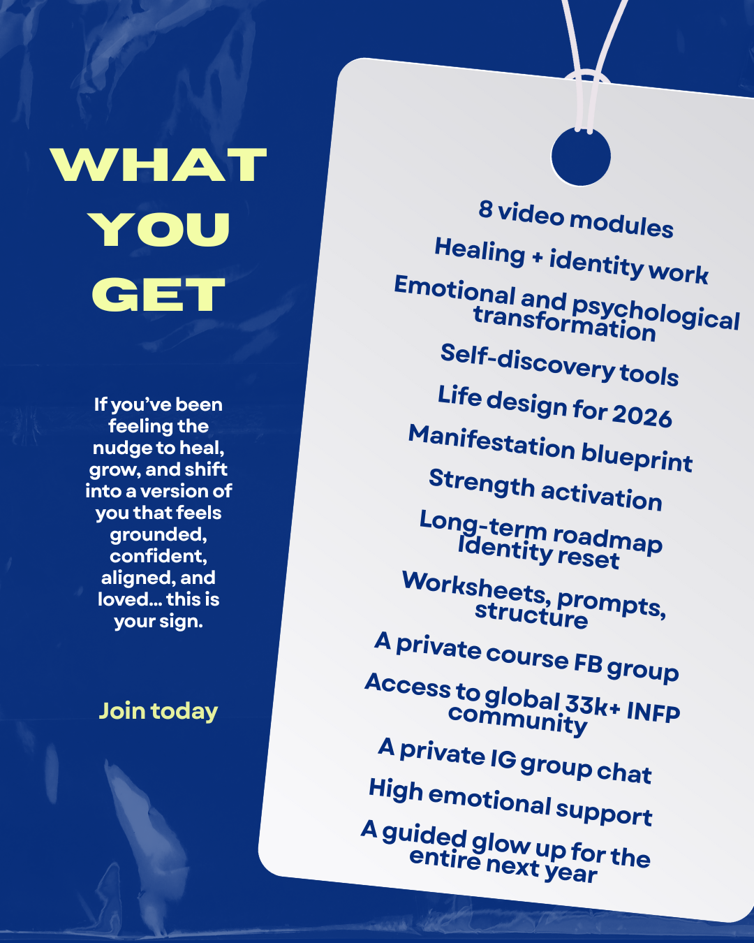 This isn’t a course you rush through. It’s a guided, intentional journey created specifically for INFPs who want clarity, healing, and meaningful change, and who are ready to do the work, not just think about it.
